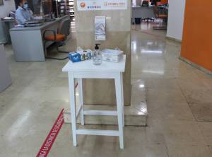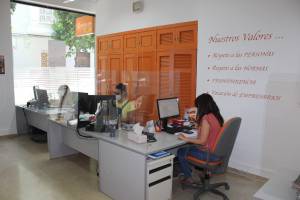 En nuestra oficina es obligatorio el uso de la mascarilla tanto para empleados como para clientes, la higiene de manos y del material usado, la distancia de seguridad y la protección mediante mamparas en la atención personalizada.